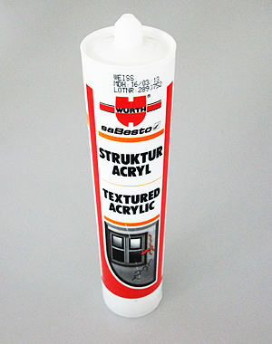 Acryldisp. M. Kornstruktur, geruchlos. Alterungswitterungs- (nach Aushärtung), UV-beständig (nach Aushärtung).