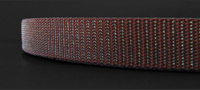 Rolladengurt in braun mit einer Gurtbandstärke von ca. 1,5 mm. Aufzuggurt in Querrippenoptik mit verstärkten Nylonkanten.